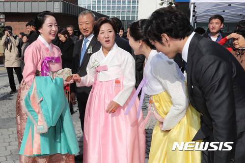 【서울=뉴시스】장세영 기자 = 노현정씨가 11일 명동성당에서 열린 정성이 이노션고문의 딸 선아영씨의 결혼식에 참석하고있다. 2016.11.11.