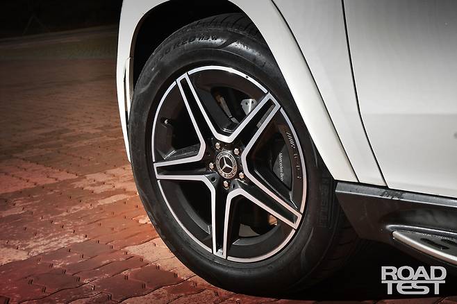휠은 AMG 전용 20인치로, 타이어 크기는 275/50 R 20이다. 하지만 왠지 모르게 휠이 작아 보인다. 차체 크기가 큰 탓도 있지만 타이어 편평비가 50으로 휠 크기 대비 높다. 경쟁 모델인 BMW X5는 같은 20인치 휠에 편평비 45(앞 타이어)를 끼운다. 반면 브레이크는 탄탄하다. AMG 전용 캘리퍼로 피스톤이 앞은 두 개, 뒤는 한 개다. 앞 디스크엔 방열 구멍을 뚫어 쉽게 달아오르지 않도록 했다.