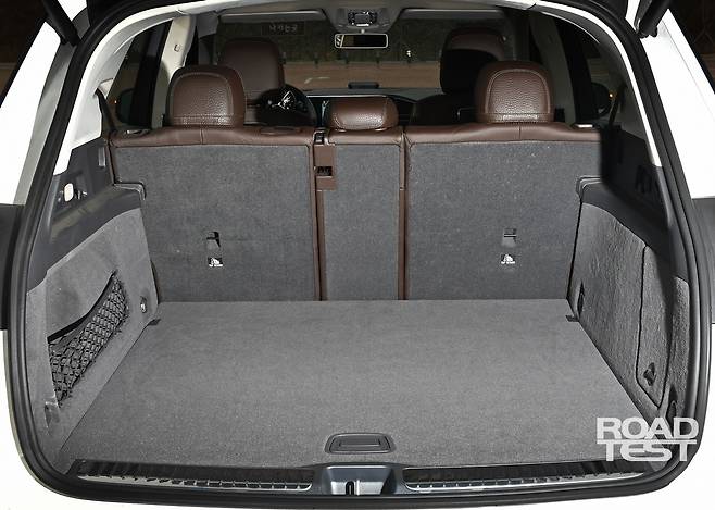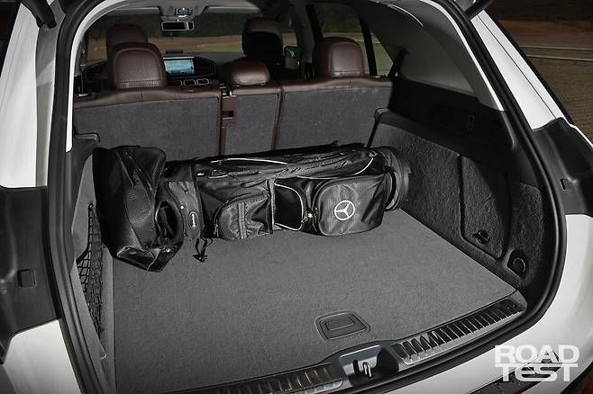 트렁크를 열어보니 골프백이 있다. 간혹 뒤쪽 휠 하우스가 트렁크 안쪽으로 불거져서 긴 물건을 가로로 넣지 못하는 차가 있다. 하지만 GLE 450은 트렁크 좌우 벽에 튀어나온 부분이 없다. 덕분에 골프백을 온전히 가로로 넣을 수 있다. 메르세데스-벤츠 코리아가 슬그머니 트렁크에 골프백을 넣어 둔 이유가 짐작이 간다.