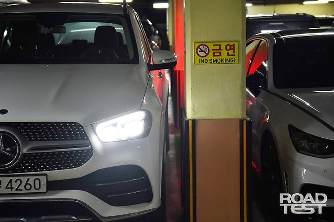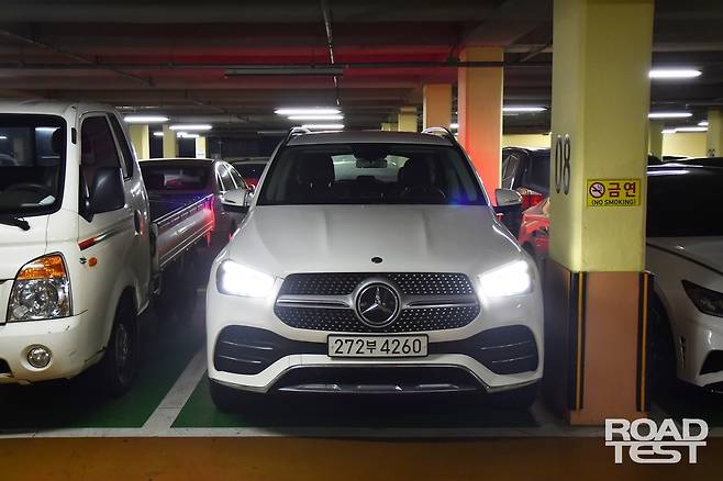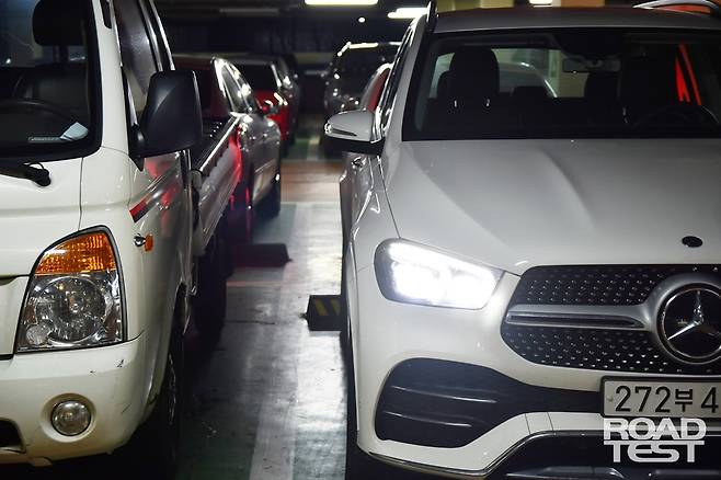 메르세데스-벤츠 GLE 차체의 길이와 너비, 높이는 각각 4,930×2,020×1,770㎜, 휠베이스는 2,995㎜다. 덕분에 신축 주차장이 아닌 이상 한 칸을 꽉 채운다. 내가 사는 아파트 기준으로 한 쪽 기둥에 바짝 붙여야 동승자, 혹은 옆 칸의 운전자 내릴 공간이 나온다. 주차선 양옆 간격을 똑같이 맞춰 주차하면 “비매너” 소리듣기 딱 좋다.
