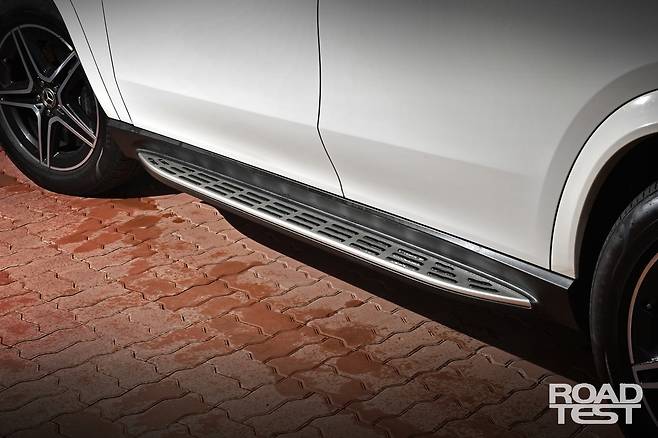 그릴 아래엔 AMG 모델처럼 공기 흡입구 모양이 있다. 하지만 실제로 구멍을 뚫지는 않았다. 범퍼 밑에 크롬 언더가드는 조금 어색하다. 오프로드와 온로드를 넘나드는 모델이라고 하지만 험로에서 앞 범퍼 아래에 상처 나기 쉽기 때문이다.