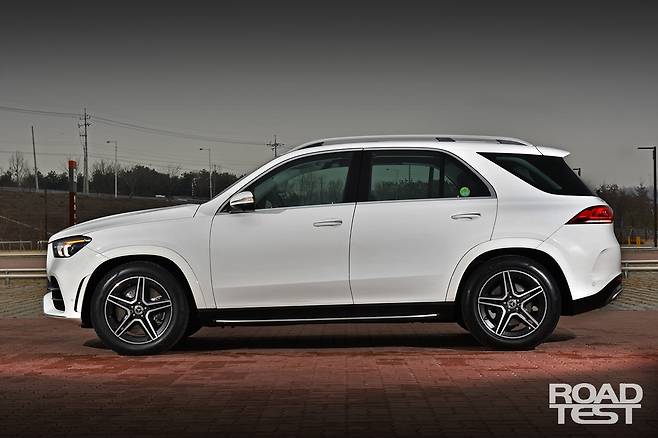 옆모습을 보면 M-클래스의 흔적을 찾을 수 있다. 바로 사선으로 떨어지는 C 필러와 리어램프, 그리고 3열 창문이다. 문 아래와 뒤쪽 펜더 면을 날카롭게 접어 높이가 높은 SUV지만 날렵해 보인다. 또한, 어린 아이들이 안전하게 타고 내릴 수 있도록 사이드스텝도 마련했다.