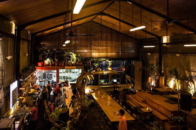 슬슬 해가 진다면, 페어몬트 자카르타(Fairmont Jakarta) 호텔 22층에 오르자. K22 바는 완전한 루프톱은 아니지만 사방이 야외로 트인 구조라 자카르타의 도심 야경을 감상하기에 충분하다. 분위기는 미래적이랄까. 푸른빛 LED 등이 들어온 원형 바는 자카르타의 빛나는 전경, 그리고 칵테일 한 잔과 더없이 잘 어울린다. ‘여(女)행자’라면 목요일을 노려보는 것도 좋겠다. 매주 목요일 저녁 7~10시 ‘레이디즈 나이트(Ladies Night)’에 스낵을 주문하면 칵테일이 무료다.