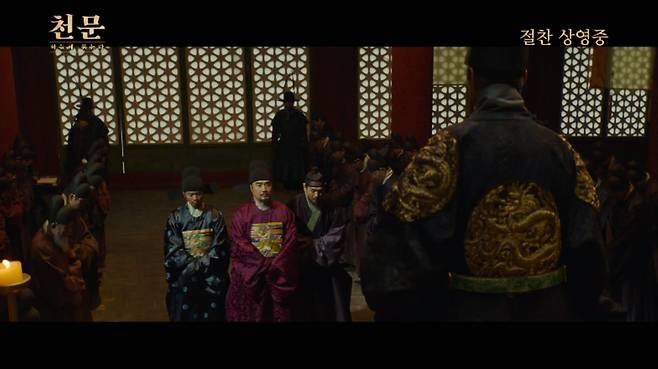 영화 '천문: 하늘에 묻는다' 측은 1월7일 세종의 카리스마 넘치는 모습으로 관객들에게 큰 인상을 남긴 검은 곤룡포 장면의 무삭제 사이다 영상을 최초 공개했다.