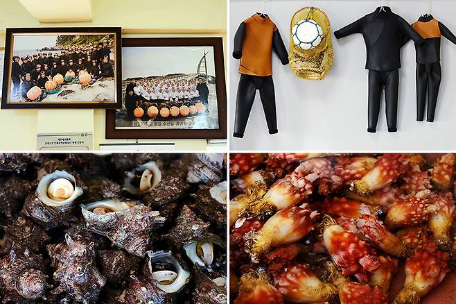해녀의 집에 들어가니 한적한, 그리고 편안한 분위기의 공간을 확인할 수 있었다. 해녀의 집이 워낙 다양하게, 그리고 각자의 스타일로 운영되고 있는 만큼 어떤 통일된 디자인이나 감성은 쉽게 느낄 수 없는 건 사실이지만, 해녀 분들의 모습이 담긴 사진이나 수조나 수채 등에 모여 있는 해산물들은 괜한 미소를 짓게 만든다.