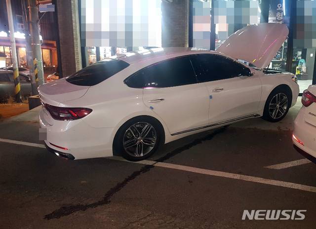 [광주=뉴시스]변재훈 기자 = 차량 출고 2년 만에 승용차 배터리가 알 수 없는 이유로 폭발해 차주가 22일 원인 규명을 요구하고 있다. 시동을 켜자마자 배터리가 폭발해 차량 외부로 황산액이 누출돼 있다. (사진=독자 제공) 2020.01.22.