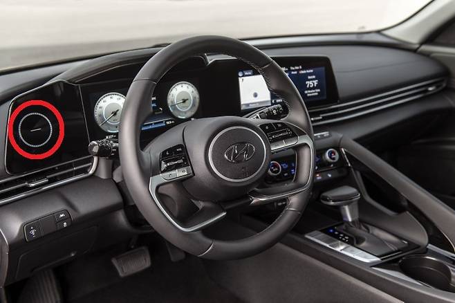신형 아반떼 인테리어 공개와 함께 소비자의 의문이 빗발치는 부분이 생겼다. 클러스터 왼쪽에 원형 디자인이 존재하는데, 어떤 기능인지 설명이 없었다는 것이다. 인터넷 자동차 동호회를 중심으로 어떤 기능을 가지고 있는 지에 대한 갑론을박이 벌어지고 있다.