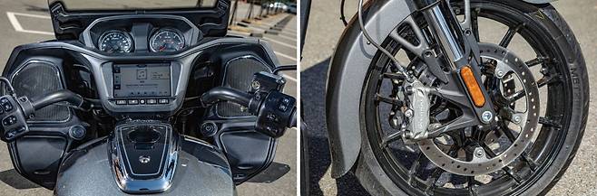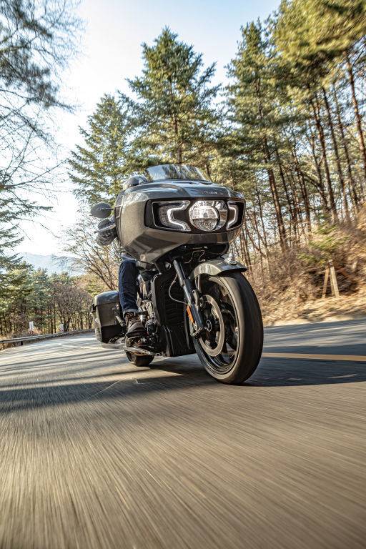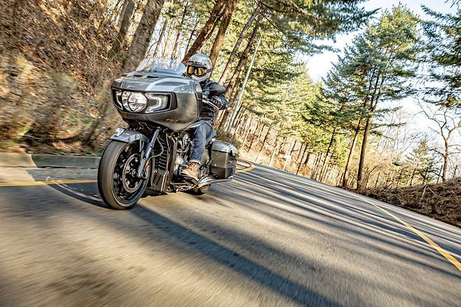 여느 스포츠 바이크 두 대 무게에 육박하는 377kg의 묵직한 바이크지만 바퀴가 구르기 시작하면 마술처럼 가볍게 느껴진다. 낮게 깔린 무게중심으로 바이크를 적극적으로 다뤄도 크게 부담이 없다.