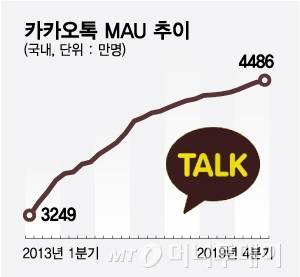 카톡의 지난해 4분기 기준 MAU(월간실질사용자)는 국내 4485만명을 포함해 전체적으로 5149만명에 달한다. 하루평균 송수신 메시지는 110억건이다. 막대한 트래픽을 바탕으로 카톡은 쇼핑, 결제, 음악, 게임, 주문 등 다양한 영역으로 서비스를 확장하며 생활플랫폼으로서 외연을 확대하고 있다.