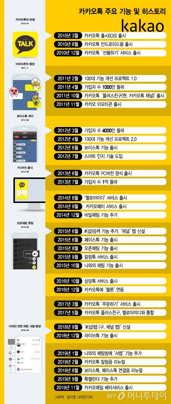 그로부터 10년이 지난 지금. ‘카톡왔숑’으로 친숙한 카카오톡은 ‘국민 메신저’라는 타이틀과 함께 생활 플랫폼으로 자리 잡았다.