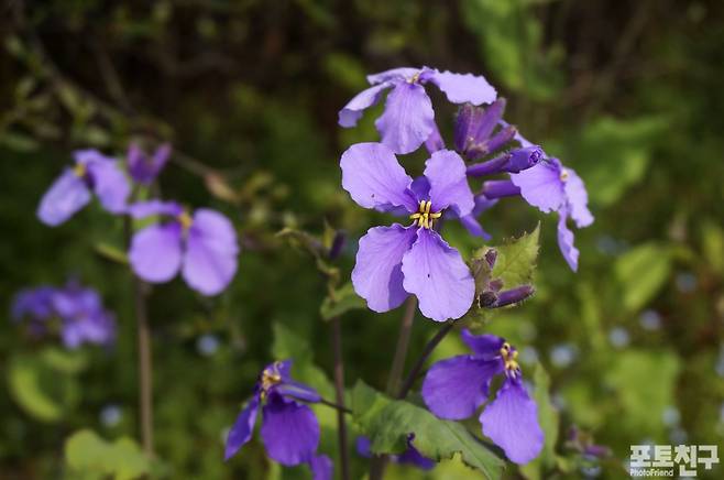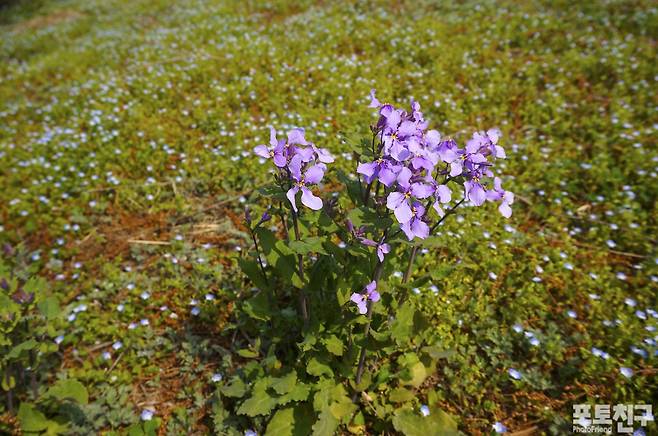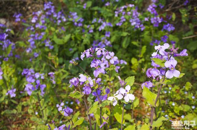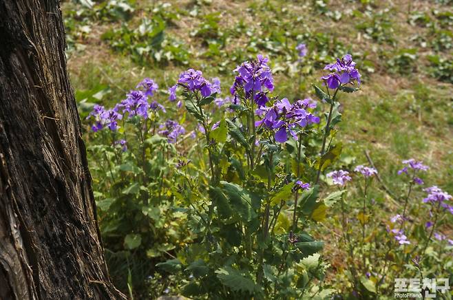 예쁘게 무리 지어 있는 보라색 꽃, 소래풀(보라유채) 꽃을 우연히 만났습니다.