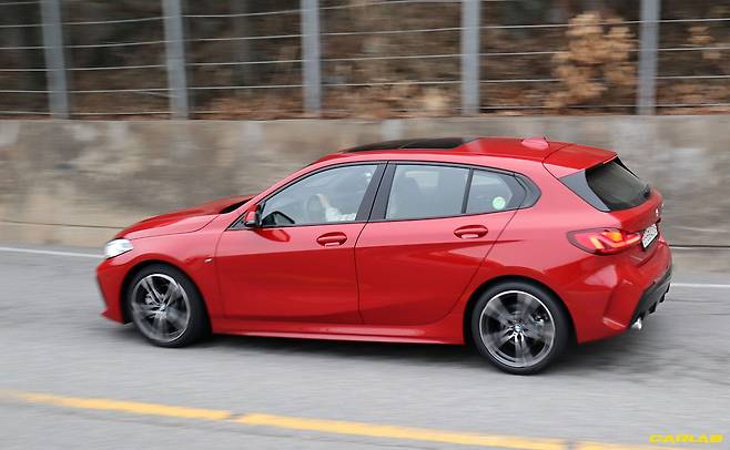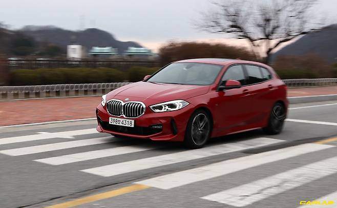 얼마 지나지 않아 시승차를 받았다. 트림은 ‘118d M 스포츠’다. 한정 판매된 ‘M 스포츠 퍼스트 에디션’을 제외하면 사실상 최상위 트림이다. 컬러는 ‘멜버른 레드’. 아담한 덩치와 화려한 색상이 잘 어울린다.