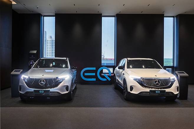 주인공은 9층의 EQ존이다. 지난해 출시된 EQ 브랜드의 첫 순수 전기차 EQC가 기자를 맞았다. 연이어 벤츠 S클래스의 전기차 버전인 EQS도 만날 수 있었다. 블랙 암전을 적절히 사용한 이유는 EQS의 형광빛 화려한 디자인을 더욱 돋보이게 했다.