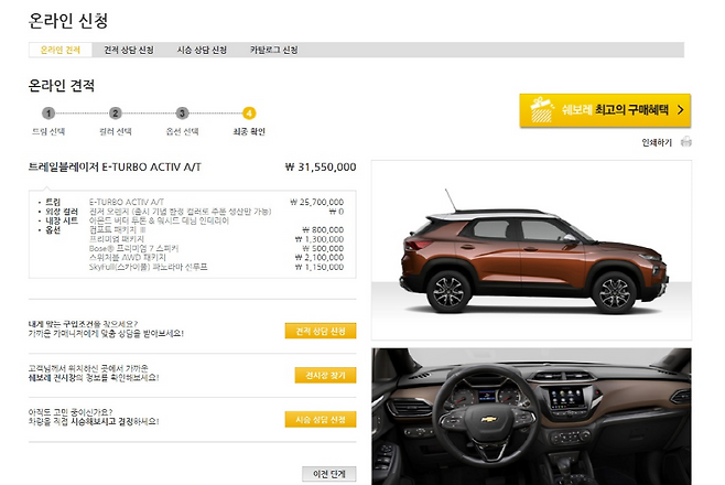 # 쉐보레 ‘온라인 견적’, 의외로 자상함…개소세 미반영ㆍ견적 저장 불가