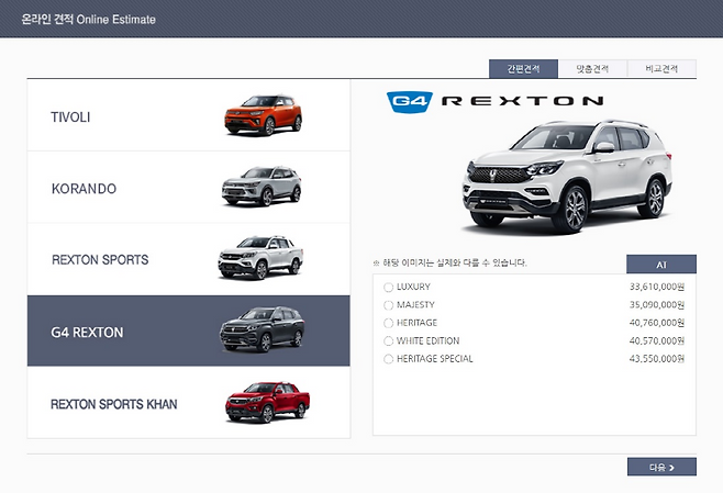 # 쌍용차 ‘간편견적’, 간결하고 빠르지만…