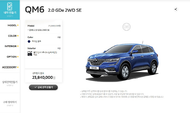 르노삼성은 시각화에 집중했다. 360도 화면 전환 기능에 모두 쏟아부은 느낌이다. 국산차 중 유일하게 온라인 견적 페이지 내에서 360도 화면 전환 중 줌인ㆍ줌아웃 기능을 지원한다. 외장은 화면 전환 시 높이 조절까지 함께 이뤄져 다양한 모습을 볼 수 있다. SM6와 QM6는 국산차 중 트림별 차이를 가장 확실하게 보여준다. 휠은 물론 실내 모니터 유무까지 알 수 있다. 국산차 중 유일하게 모니터가 빠진 ‘깡통’ 사양을 만나볼 수 있는 셈이다.