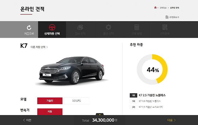 # 기아차 ‘온라인 견적’, 유용한 트림ㆍ옵션 통계…비주얼라이징은 부족