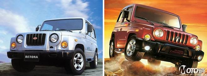 K-111 기반의 록스타를 대체하는 후속 모델로 등장한 레토나는 전기형인 '레토나(Retona)'와 페이스리프트를 거친 후기형 모델 '레토나 크루저(Retona Cruiser)'로 나뉜다. 레토나는 K-131을 하드톱 구조로 변경하고 등화관제등의 삭제, 일반적인 형태의 범퍼 채용, 사이드 미러 변경, 알로이 휠을 적용하는 등, 군용차량의 느낌을 지워낸 형태로 완성되었다. 엔진은 2.0리터 디젤 엔진과 군용에 적용했던 2.0리터 가솔린 엔진을 사용하였다.