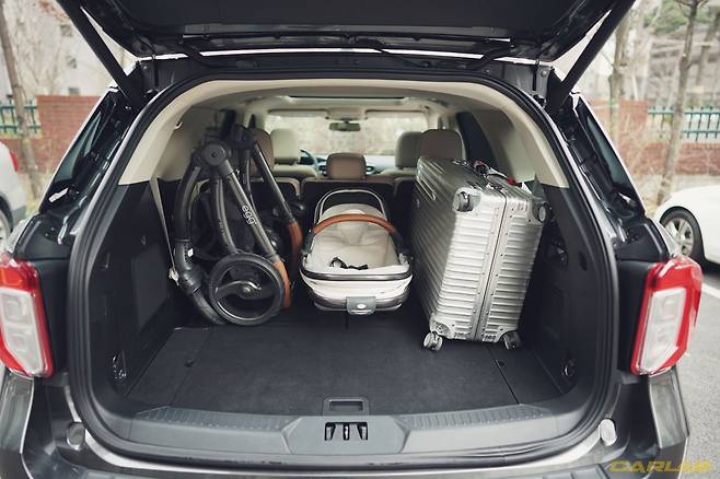 익스플로러는 미국차 답게 거대한 트렁크 공간을 지녔다. 3열 시트를 펼친상태가 무려 515리터, 3열 시트를 접었을 경우 1,356리터다. 1:1:1로 분할 폴딩되는 2열시트까지 모두 접을 경우 2,486리터까지 확장된다.