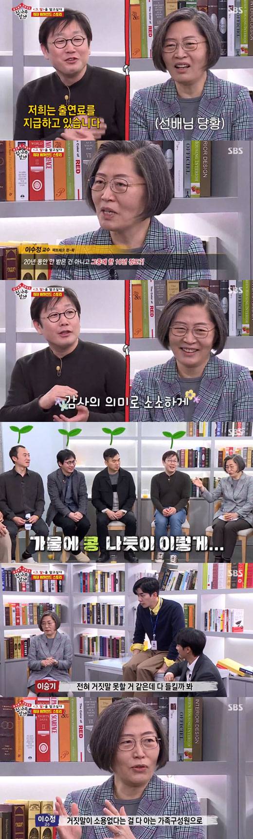 끝으로 이승기가 "가정이 있으시지 않나. 남편 분은 교수님께 전혀 거짓말을 못하실 것 같다. 다 들킬 거 같다"고 돌직구 질문을 던졌다.