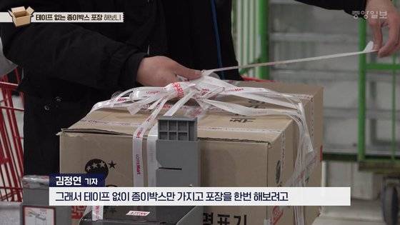 [영상]테이프·끈 없앤 마트..상자에 장 본 물품 담고 들었더니