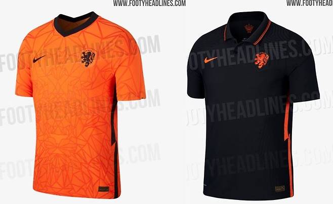 축구용품 전문매체 `푸티 헤드라인스`는 11일 "유로 2020에 착용할 네덜란드 대표팀 홈, 원정 유니폼 디자인을 입수했다"고 전하며 디자인 그래픽과 실물 사진을 나란히 공개했다.