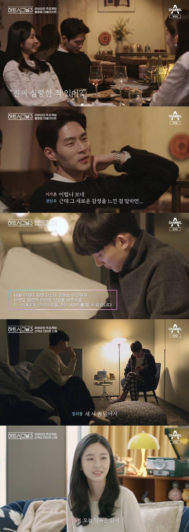 10일 방송된 채널A 예능프로그램 '하트시그널3'에서는 더블 데이트를 즐기는 입주자들의 모습이 담겼다.
