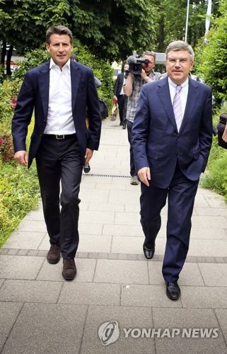 epa08315909 (FILE) - Chairman of the Organising Committee for the London 2012 Olympic Games, Lord Sebastian Coe (L) of Britain and President of the German Olympic Sports Confederation (DOSB), Thomas Bach (R) of Germany arrive for a press conference in Frankfurt Main, Germany, 31 May 2012 (re-issued on 23 March 2020). World Athletics president Coe has called for the Tokyo 2020 Olympic Games to be postponed due to the ongoing coronavirus COVID-19 pandemic, media reports claimed on 23 March 2020. EPA/FRANK RUMPENHORST GERMANY OUT *** Local Caption *** 50365579