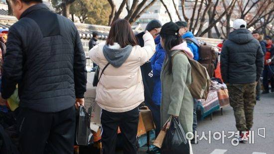 나이가 지긋해 보이는 노인들 사이에서 10대, 20대 젊은이들이 자주 눈에 띄었다. 한눈으로 봐도 쇼핑의 고수로 보이는 20대 커플도 그들 중 한 무리. 말을 건네보니 역시 '5년째 단골'이란다. 이들에게 쇼핑 비결을 물었다. A씨(26, 여)는 구제시장 필수 아이템으로 에코백과 현금을 꼽았다. 그는 "비닐을 들고 다니는 사람도 많지만 이것저것 넣다 보면 찢어지기 일쑤"라며 "많이 살 생각이라면 캐리어를 들고 오는 것을 추천한다"며 경험이 농축된 팁을 알려줬다. 곁에 있던 그의 남자친구는 "최근 젊은 사장님이 운영하는 가게가 많이 생겨 카드 계산이 가능한 곳도 있지만 현금을 받는 곳이 더 많다"고 설명했다.