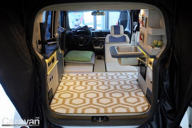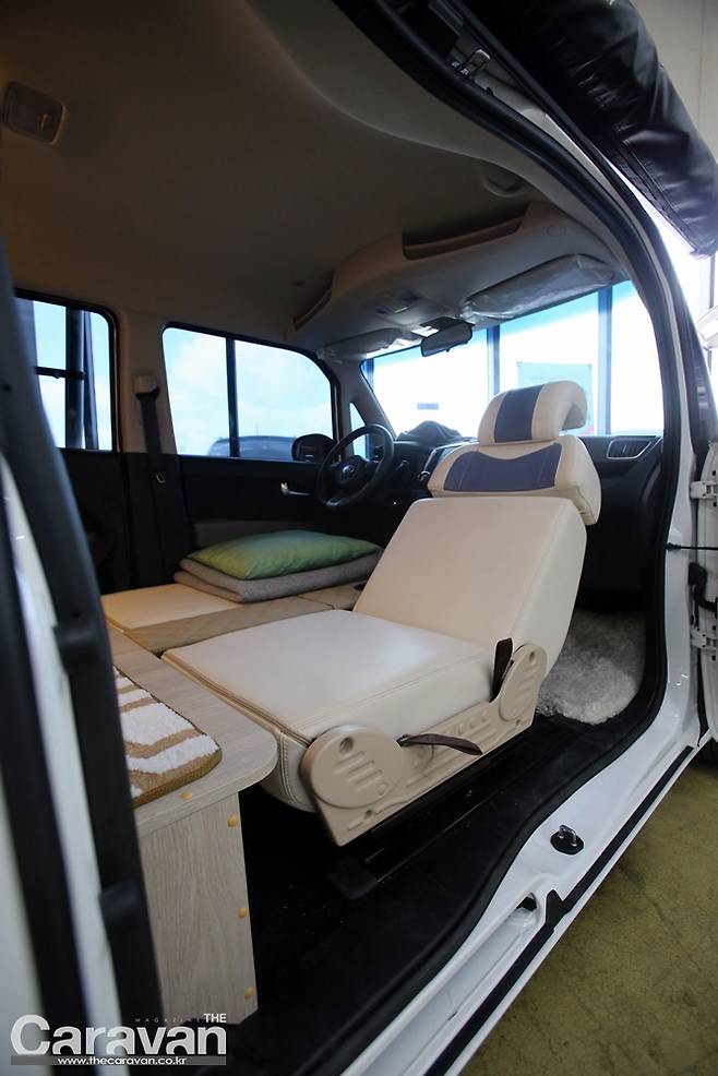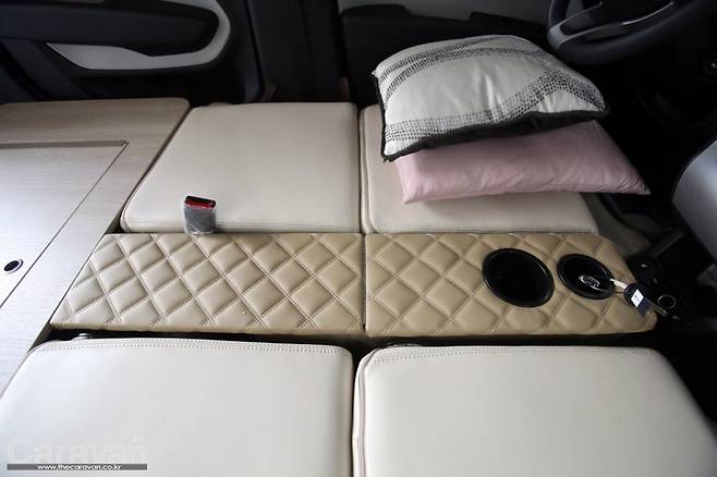 차박을 해본 사람이라면 공감할 것이다. 일반적인 차량의 기어 노브가 얼마나 걸림돌이 되고 불편한지... 레이는 센터페시아 부분에 이 장치가 위치해 운전석과 동반석 사이를 채워주는 것만으로도 훌륭한 풀플랫 시스템이 완성된다. 풀플랫 시스템이 완성되면 카펫트를 깔거나 침낭 혹은 이불을 덮어 편안하고 안락한 취침공간으로 변환을 마무리할 수 있다.