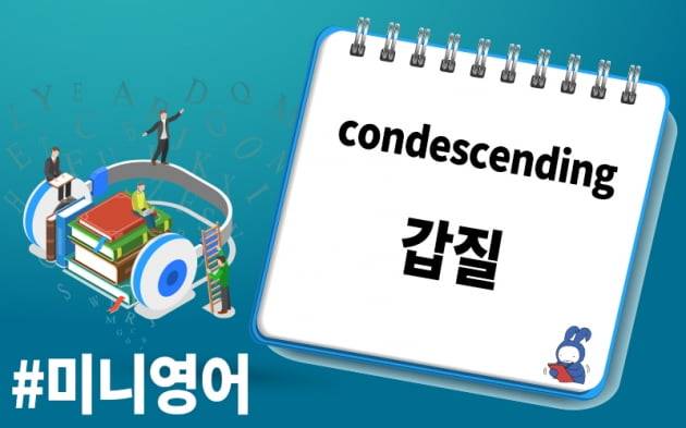 영어로 갑질은 ‘condescending’입니다. 주로 ‘거들먹거리는’, ‘잘난 체하는’이란 뜻으로 사용됩니다.