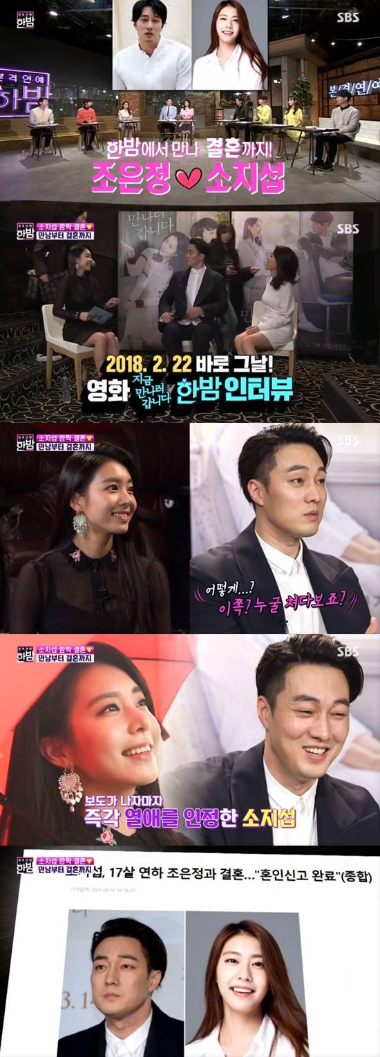 8일 방송된 SBS '본격연예 한밤'에서는 배우 소지섭이 지난 7일 소속사를 통해 깜짝 결혼 소식을 밝혔다고 알렸다. 조은정은 2016년부터 2018년까지 '한밤' 큐레이터로 활약했다.