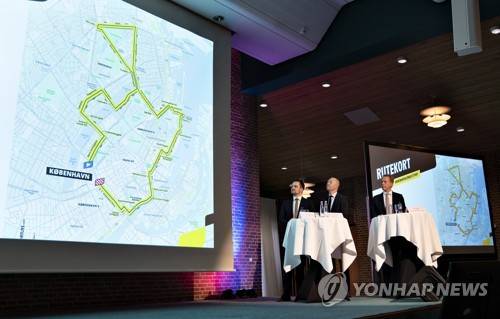 epa08192372 (L-R) Denmark's Minister of Commerce Simon Kollerup, Mayor of Vejle Jens Ejner Christensen and director of the Grand Depart Copenhagen Alex Pedersen during the presentation of the Tour de France's 2021 Grand Depart, in Vejle, Denmark, 04 February 2020. The start of the 2021 Tour de France will be on 02 July 2021 in the Danish capital of Copenhagen. EPA/HENNING BAGGER DENMARK OUT
