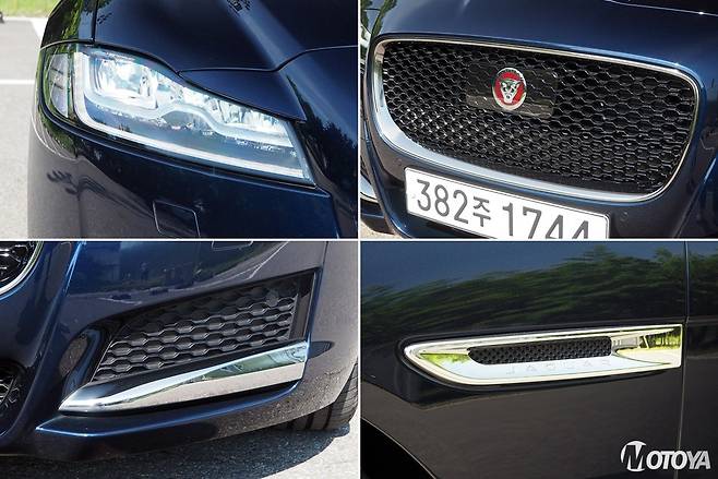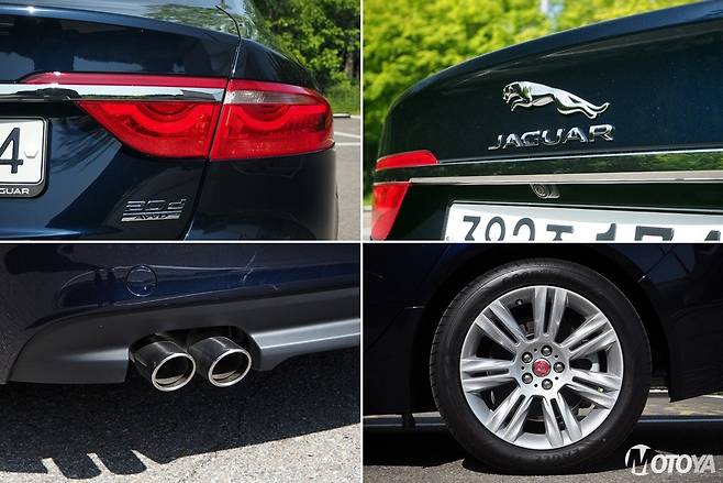 XF의 얼굴에서는 현행 재규어 세단들에서 공통적으로 나타나는 특징들이 그대로 나타나 있다. 날카롭게 뜬 눈과 거대한 매시그릴, 그리고 깔끔하고 단정하게 마무리된 디테일은 현행 재규어 스타일링 기법의 대표적인 예시다. XF의 얼굴은 세단 라인업을 넘어, 크로스오버/SUV 라인업인 F-페이스, E-페이스, 그리고 전기차 i-페이스에서도 찾을 수 있다. 또한 뒷모습은 일견 단순하면서도 스포티한 감각이 살아 있다. 대형의 테일램프는 수평 방향으로 길게 디자인되어 있어 차를 시각적으로 넓어보이게 만들어준다.