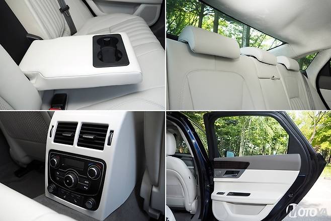 센터페시아 하부에는 스마트폰을 수납할 수 있는 공간이 마련되어 있지만 아쉽게도 무선충전장치는 내장되어 있지 않다. 스마트폰 무선충전 기능이 대중차에도 일반화된 지금의 시점에서 아쉬운 점이다. 그리고 실내 전반적으로 수납공간이 그리 넉넉하지 못한 편이라는 점도 아쉽다. 인포테인먼트 시스템은 현재 재규어랜드로버가 공통으로 사용 중인 터치스크린 기반 시스템을 사용하고 있다. 오디오는 여타의 재규어랜드로버 모델들과 마찬가지로, 메리디안(Meridian)의 사운드 시스템을 사용하고 있다.운전석은 부드러우면서도 탄력있게 감겨 오는 착좌감을 경험할 수 있다. 신체를 부드럽게 감싸주면서도 받쳐줘야 할 곳은 확실하게 지지해 준다. 편안한 착좌감 덕에 장시간의 주행에도 피로가 덜한 느낌이다. 운전석은 8방향 전동조절 기능과 4방향 전동식 요추받침, 그리고 3단계의 열선 기능이 내장되어 있다. 하지만 지난 연식과 마찬가지로, 여전히 통풍기능이 적용되지 않았다는 점은 아쉽다.