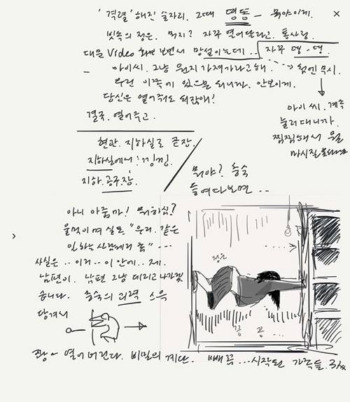 [공식]봉준호 감독 '기생충' 스케치 전격 공개, 소름돋는 세부묘사 "역시 봉테일"