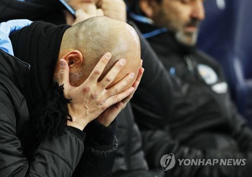 epa08228983 Manchester City manager Pep Guardiola reacts on the bench during the English Premier League match between Manchester City and West Ham United in Manchester, 19 February 2020. EPA/LYNNE CAMERON