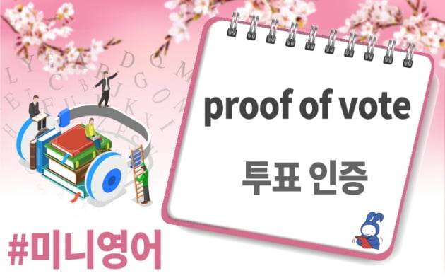 오는 15일은 제21대 국회의원 선거일입니다. 투표를 마친 대부분의 유권자는 사회관계망서비스(SNS)에 인증하기 위해 사진을 찍습니다. 투표 인증을 남기기 위해서죠. 투표인증 영어로는 'proof of vote'입니다. 투표를 뜻하는 vote, 증명을 뜻하는 proof 입니다. 투표 셀카를 뜻하는 'ballot selfie'도 자주 쓰이는 표현이죠.