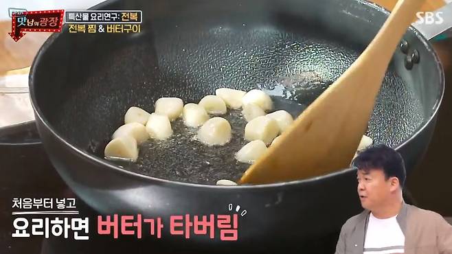 백종원은 "보통 전복 버터구이를 할 때 버터부터 넣는 사람들이 많다. 그런 실패한다. 버터가 다 타버린다. 마늘을 먼저 볶은 다음 버터를 넣어라"고 팁도 전했다.