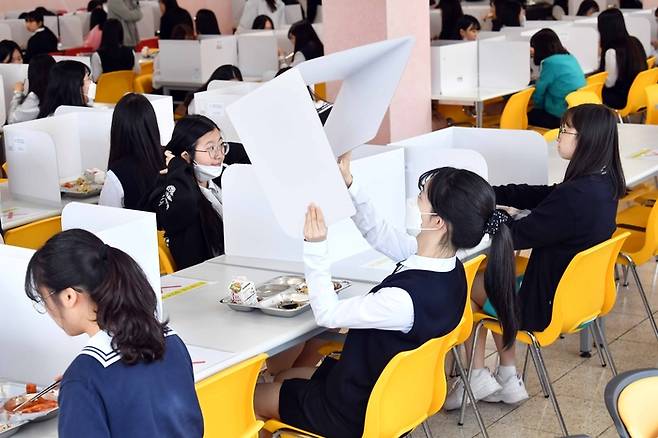 - "급식실에서도 가림막 세워놓고" 이천양정여고 고3 개학 첫날 점심 풍경