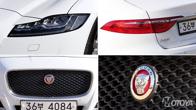 XF의 얼굴은 현행 재규어 세단들에서 공통적으로 나타나는 특징을 그대로 담고 있다. 날카롭게 뜬 눈과 거대한 매시그릴, 그리고 의외로 단정하게 마무리된 범퍼 둘레의 디테일은 재규어만의 스타일링 기법을 잘 보여준다. XF의 얼굴은 자사의 세단 라인업 전반에서 공통적으로 발견할 수 있으며, 심지어 SUV 모델인 F-페이스(F-PACE)에도 거의 그대로 적용되어 있음을 알 수 있다. 심지어 XF의 얼굴은 연내 국내에도 출시될 스포츠카, F-타입의 페이스리프트 모델에도 반영되어 있다.