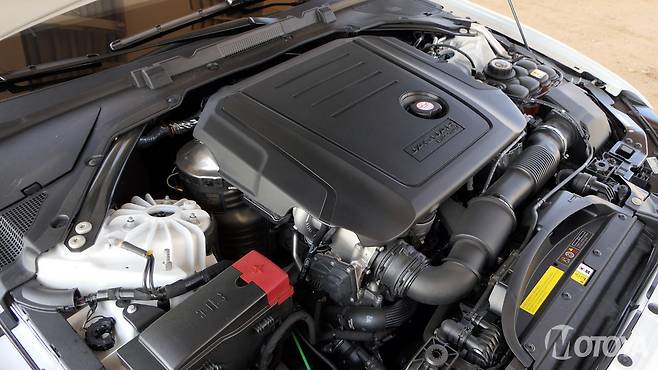 XF에 탑재된 엔진은 재규어와 랜드로버가 다양한 모델에 사용하고 있는 주력급 디젤 엔진인 2.0리터 직렬 4기통 '인제니움'엔진이다. 시승차에 탑재된 인제니움 디젤엔진은 180마력 사양으로, 180마력/4,000rpm의 최고출력과 43.6kg.m/1,750~2,500rpm의 최대토크를 발휘한다. 구동방식은 상시사륜구동 시스템을 사용하고 있으며, 변속기는 ZF의 자동 8단변속기를 사용한다.