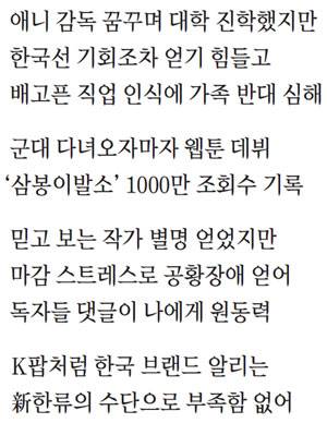 ―웹툰 작가들의 애로 사항은 무엇인가.