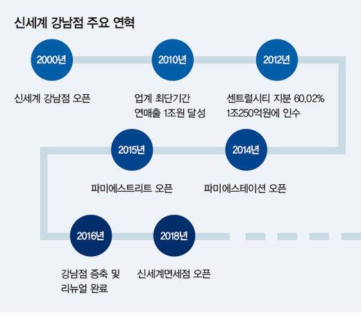 지금의 모습을 완성하기까지 두 번의 큰 결단이 결정적인 역할을 했다. 첫째는 2012년으로 거슬러 올라간다. 신세계는 2000년 10월 강남점을 출점할 당시 복합 쇼핑몰인 센트럴시티를 소유주에게 20년 장기 임차해 운영을 시작했다. 그런데 매장이 문을 연 뒤 신세계 강남점이 예상을 뛰어넘는 성과를 올리자 문제가 발행하기 시작했다. 수수료 때문이었다.