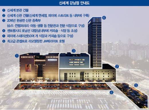 신세계 강남점도 2014년 대대적인 신·증축 리뉴얼에 돌입해 2016년 새롭게 오픈했다. 기존 5층 건물에 새롭게 6개 층(6~11층)을 쌓아 올리는 작업이었다. 무려 17개월이 걸린 작업 끝에 공사를 마쳤다.