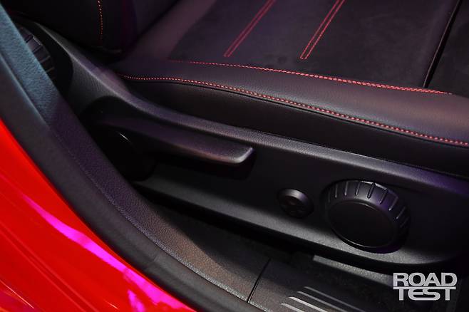 차 안은 10.25인치 디스플레이 두 개, 터빈 모양 송풍구 등 복사, 붙여넣기 한 듯 완전 같다. 운전석 시트는 전동 메모리 시트지만 동승석은 수동식이다. 특이하게도 동승석 시트는 앞뒤 위치와 높이 조절, 그리고 등받이 각도와 허벅지 받침대 조절은 수동식인 반면, 4방향 요추지지대만 전동식이다.
