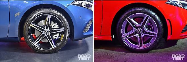 휠타이어 크기는 프로그레시브와 AMG 라인 모두 225/45 R18로 같다. 그러나 타이어는 피렐리 신투라토 P7(프로그레시브 라인), 브리지스톤 투란자 005(AMG 라인) 등 총 두 가지다. 또한 프로그레시브 라인은 일반 브레이크 캘리퍼를 쓰며, AMG 라인엔 AMG 튜닝 캘리퍼가 들어간다