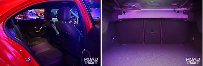 해치백이 실용성 뛰어나다고 하지만 뒷좌석을 접어서까지 짐 실을 일은 흔치 않다. 결국 기본 적재공간만 쓰는데, 이럴 땐 오히려 세단이 유리하다. A-클래스 해치백 적재공간은 370L, 세단이 405L로 35L 더 크다. 해치백의 전유물이었던 뒷좌석 폴딩도 40:20:40으로 할 수 있으니 실용성에서도 뒤처지지 않는다. 참고로 A-클래스 세단은 뒷좌석 암레스트가 없다. 그러나 시트 가운데를 접으면 접으면 암레스트로 쓸 수 있다.