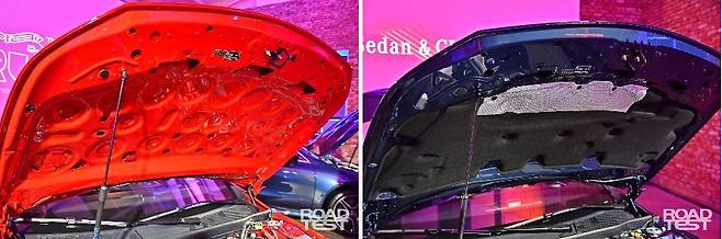 특이한 점은 보닛 안쪽 철판이 그대로 드러났다. 이날 같이 공개한 더 뉴 CLA엔 흡음재가 있다. 관계자에게 흡음재에 대해 물어봤지만 정확한 답변은 들을 수 없었다.