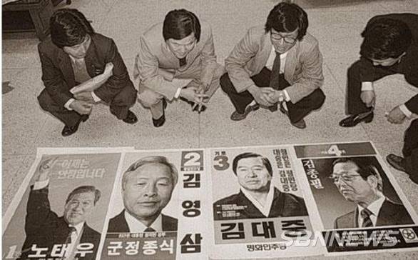 12.12사태로 신군부에게 밀려난 정승화 전 계엄사령관이 민주당 김영삼 후보 진영을 지지하고 나서자 노태우의 기세가 꺾이고, 김영삼의 인기가 치솟았다. 야권은 유세 연단에 군화를 올려놓고 청중들에게 '군정 종식'을 외쳤다. 개인적으로 아쉬운 장면이다. 결국 군정 종식을 위한 첫 관문인 후보 단일화는 끝내 이루지 못하고, 신군부의 작전에 휘말린 채 각자 돌이킬 수 없는 '동상이몽'에 젖었다.